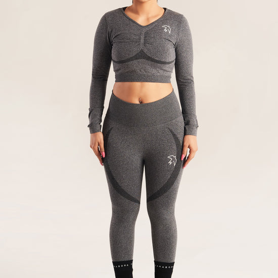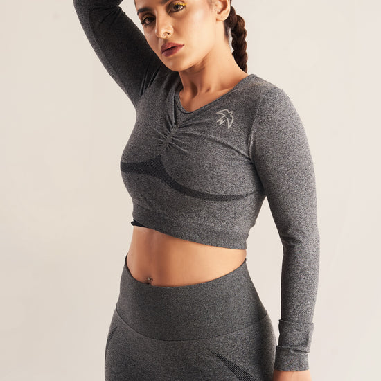 Your training requires the right amount of support. With lightweight, breathable designs, and comfortable buttery feel fabric, you can rely on our Seamless Ruched Top and leggings set to help you move and stretch however you like. No matter what, you’re free to focus on nothing but your performance